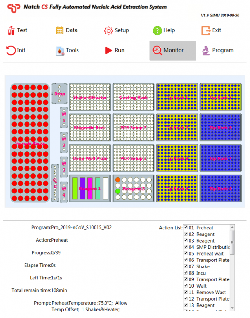 low maintenance UV disinfection SPECIFICATIONS Instrument model – S12C Sample type – Serum, plasma, whole blood, secretions, exfoliated cells, tissues, nasopharyngeal swab, oropharyngeal swab, urine, feces, etc. Sample tube specifications – Compatible with various original sample tubes Extraction Principle – one-tube fast release technology (OT) Advanced magnetic beads technology (MB) Sample type Volume – OT: 1-96 tests/batch; MB: 1-48 tests/batch Extraction Time – OT of 96 tests ≤ 40 minutes; MB of 48 tests ≤ 100 minutes Pipetting range – 10~1000 μL Level detection – Pressure detection / capacitance detection, automatic detection of liquid level Clot detection – Pressure detection, automatic detection of liquid aspiration and liquid clogging Sample loading function – Automatic liquid level detection Clot detection Tips detection Air-prof detection Magnetic field control – Permanent magnet mode Lift-type magnetic separation module Blending mode – Vortex omnidirectional liquid mixing